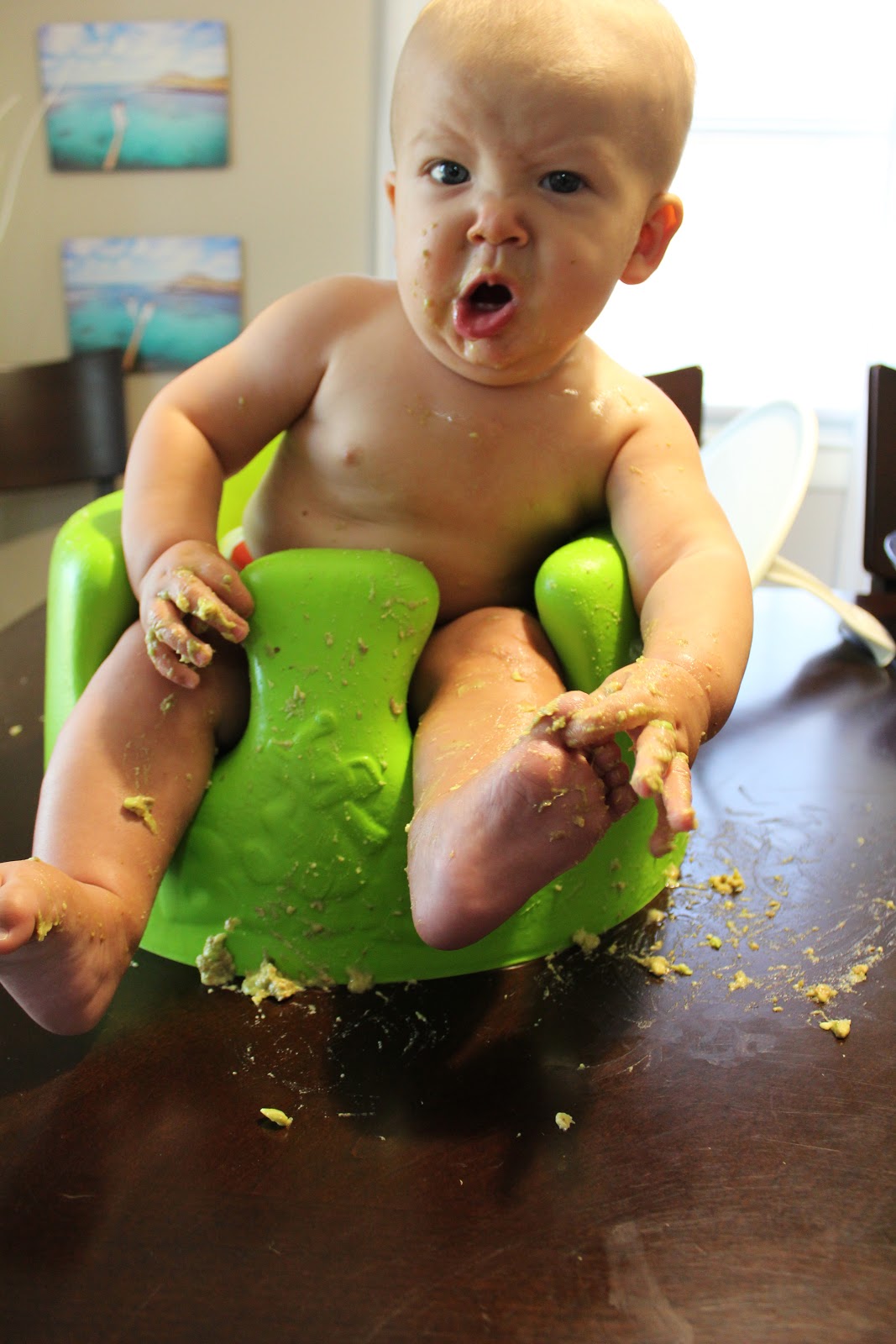 Unfortunately, my little man wasn't feeling the whole "smile for the camera" vibe. Admittedly, I wouldn't be all wide-eyed and smiling after somebody woke me up from the middle of my nap either!